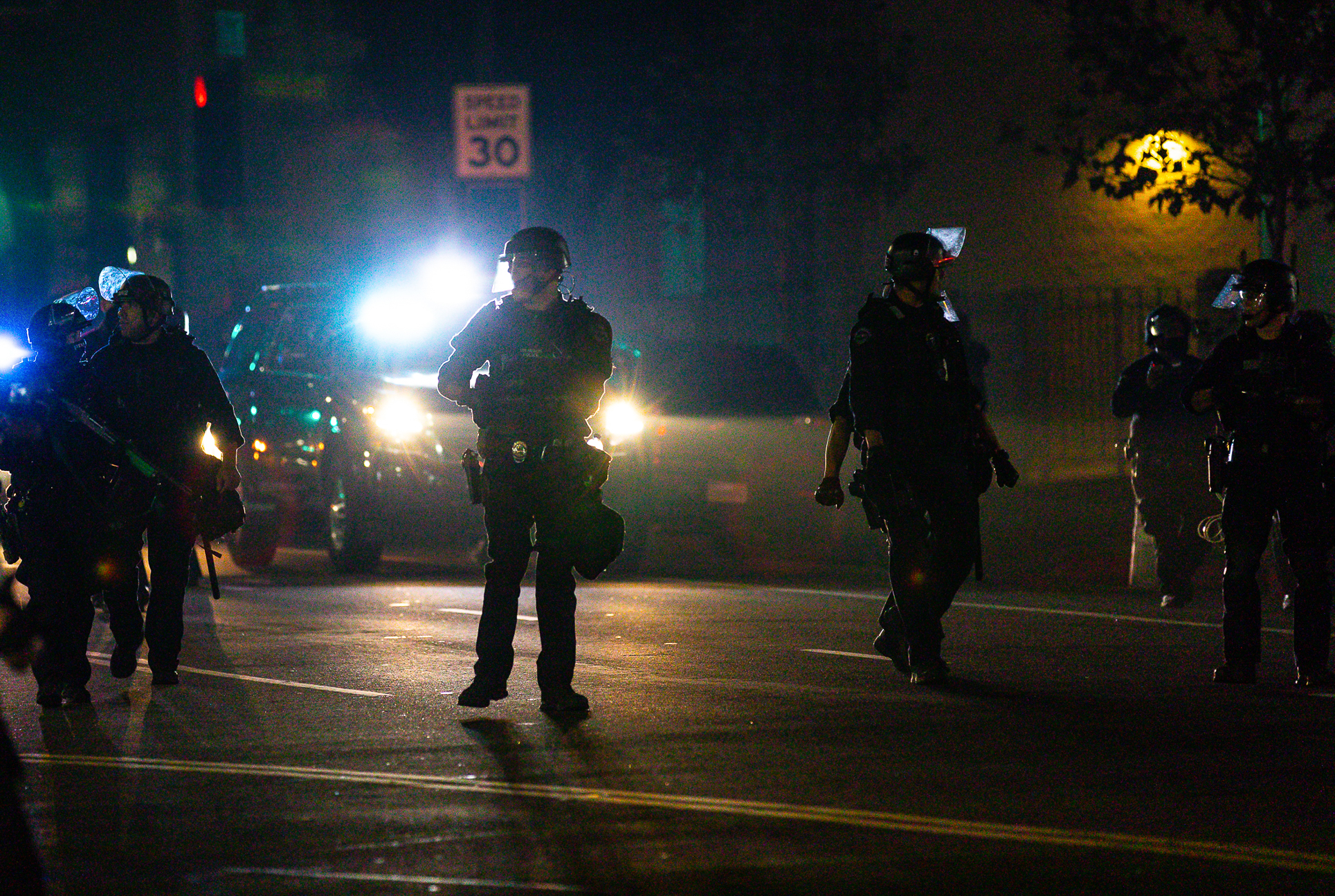 “We attempted to communicate, clear, and provide dispersal order to the group,” he noted, but added that the “crowd began to throw rocks and bottles at officers.”