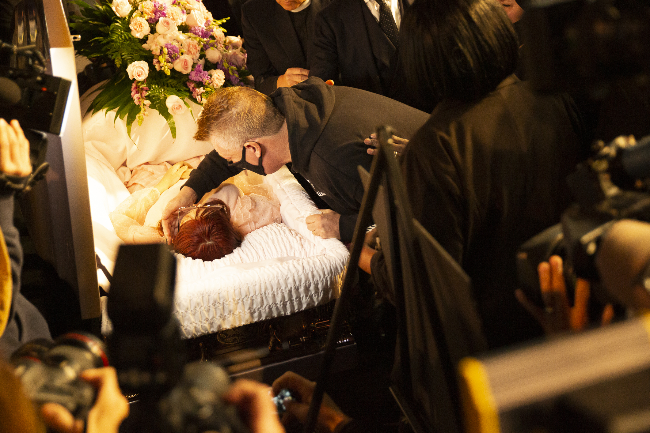 The body of Valentina Orellana-Peralta was displayed in a pink dress inside a flower-draped casket next to large photos of the girl during a funeral at City of Refuge, United Church of Christ in Gardena, near Los Angeles.