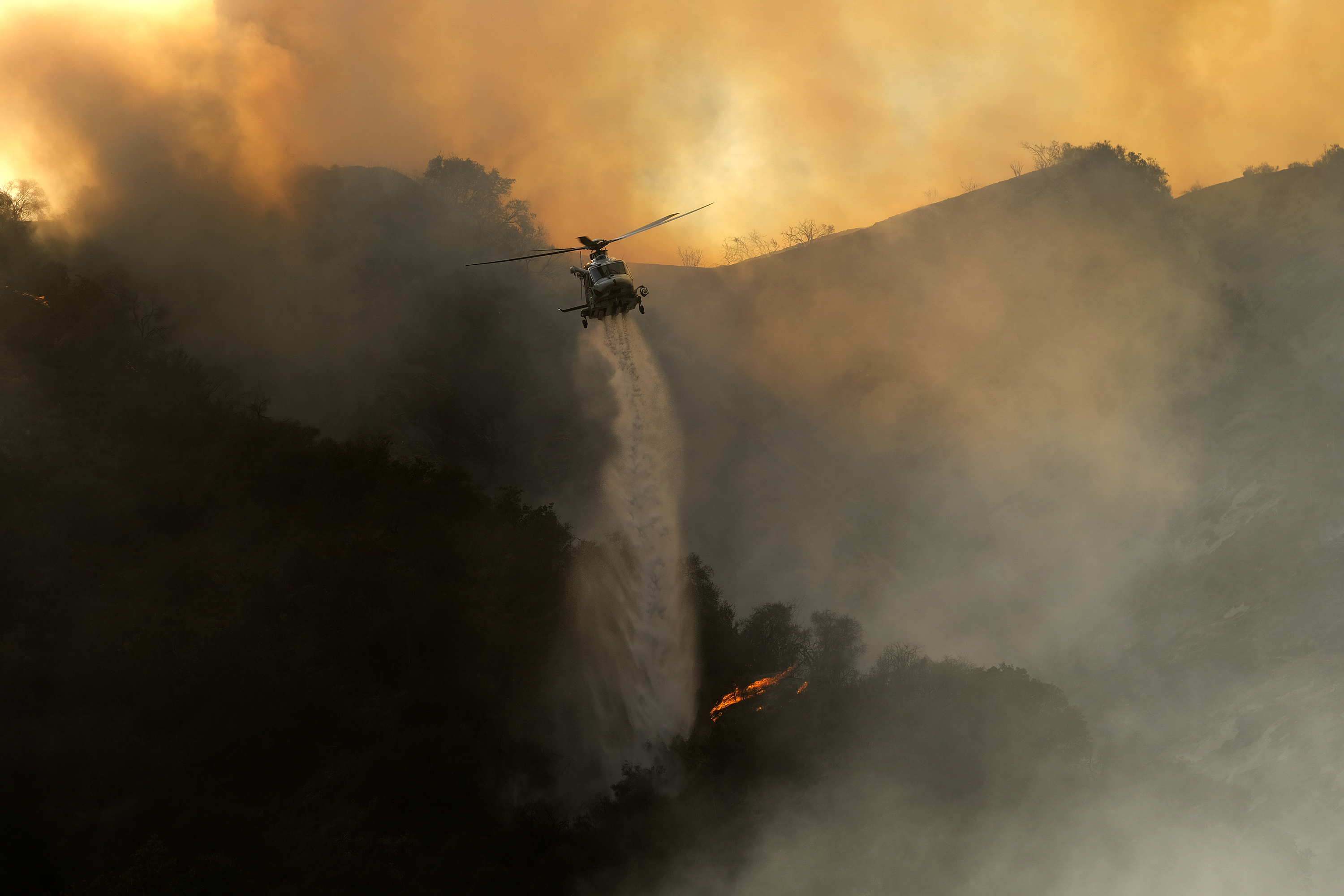 Crews relied on aircraft making drops of water and retardant because “the terrain is very steep and extremely difficult to navigate which hinders ground-based firefighting operations,” a fire department statement said.
