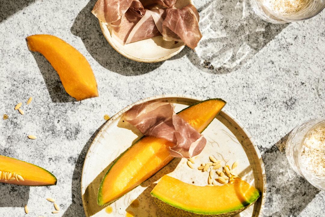For a no-fuss way to enjoy this pairing, thinly slice cantaloupe and wrap each piece in a slice of prosciutto. Many people also enjoy finishing it with a little aged balsamic vinegar.