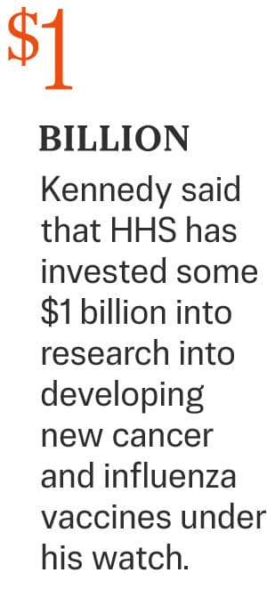 He pointed out that HHS has invested some $1 billion into research into developing new cancer and influenza vaccines under his watch.