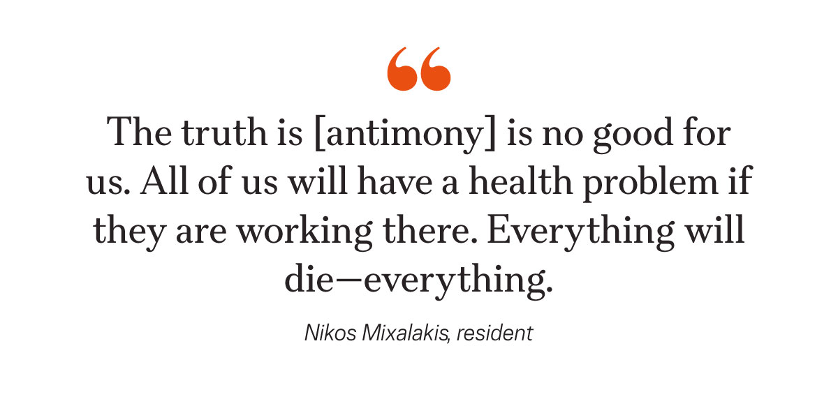Local officials, including the mayor of Chios and the president of the Chios Council, did not respond to repeated requests regarding the proposed antimony project.