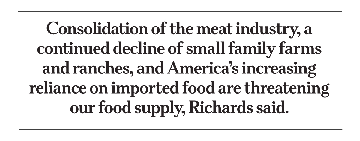 To Richards, the mission is urgent. Consolidation of the meat industry, the continued decline of small family farms and ranches, and America’s increasing reliance on imported food are threatening our food supply, he said.