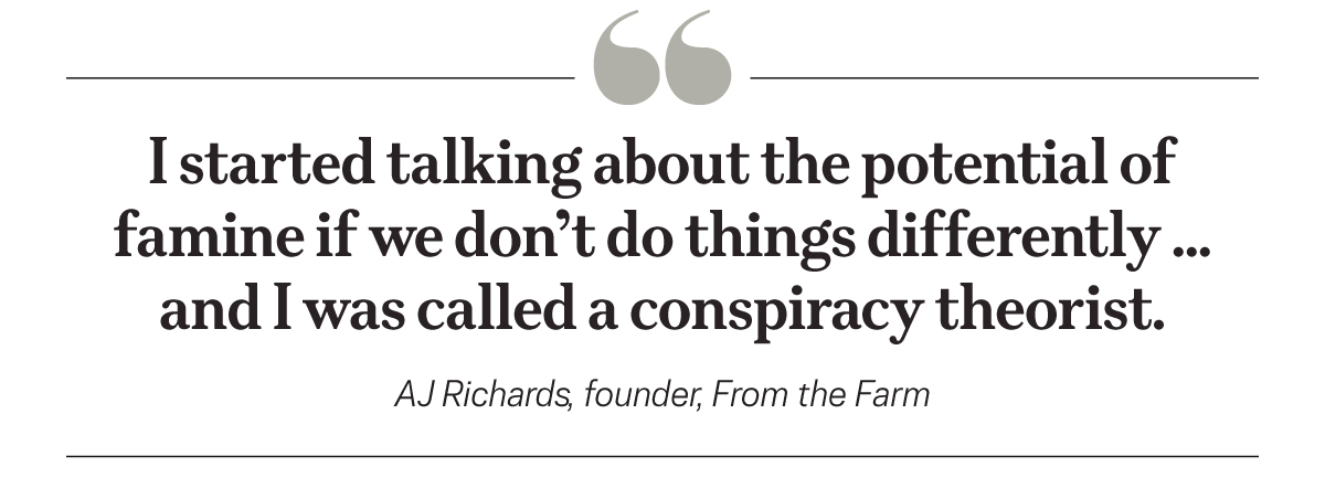 He ruminated on supply chain weaknesses exposed by the COVID-19 pandemic, and began to think of famine as a “when not if” scenario. Then, he had a vision.