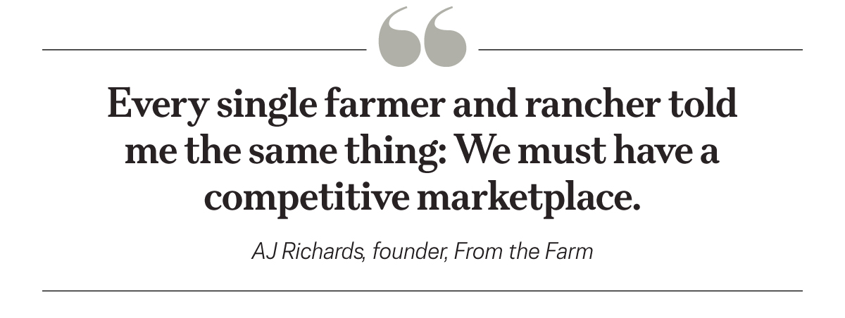 “That was really the last piece of market research that I need to see this thing holistically, at least on the meat side,” he said. “What I’ve learned is that every single farmer and rancher told me the same thing: We must have a competitive marketplace—which is what I was designing, so I knew I was on to something. I just needed to figure out all of the details.”