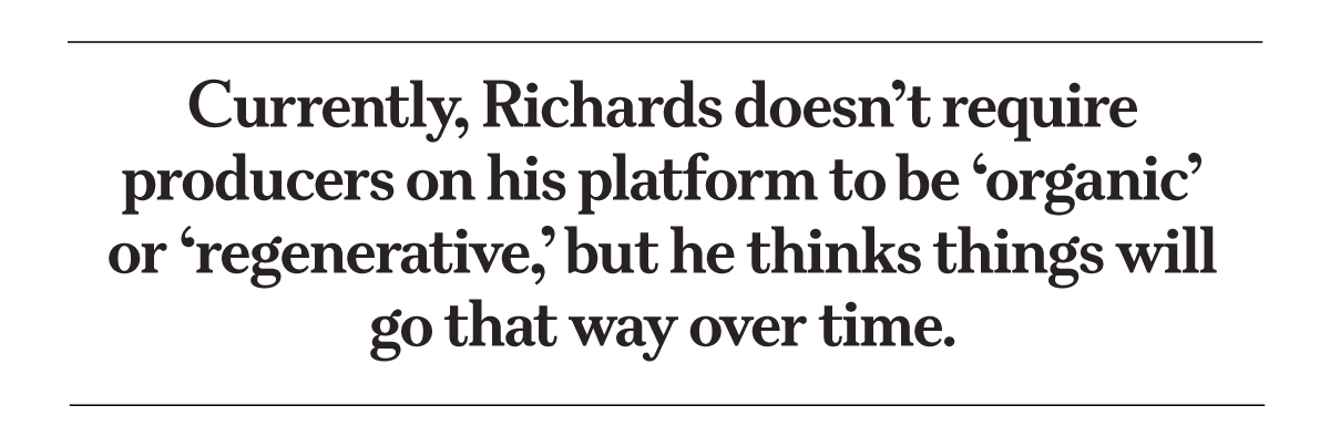 Currently, Richards does not require producers on his platform to be “organic” or “regenerative,” but he thinks things will go that way over time.