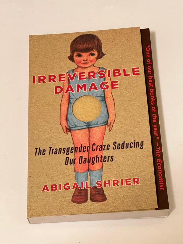 Abigail Shrier's book “Irreversible Damage” at a book-signing event hosted by the Lincoln Club in Newport Beach, Calif., on March 20, 2024. (Brad Jones/ The Epoch Times)