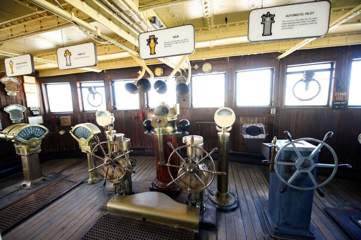 Inside the bridge aboard the historic Queen Mary ocean liner during major repairs and renovations in Long Beach, Calif., on Feb. 18, 2022. (Patrick T. Fallon/AFP via Getty Images)