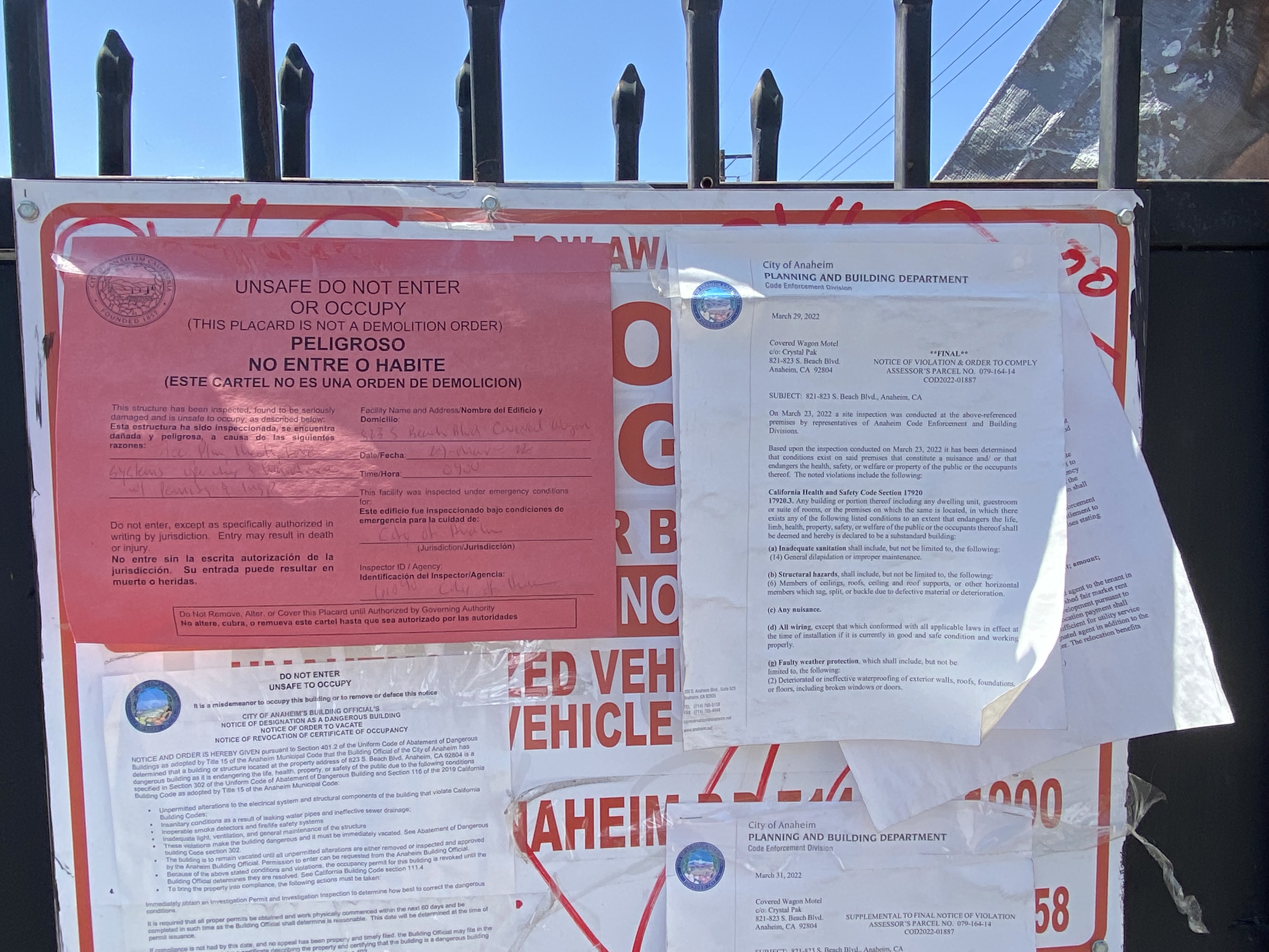 The Covered Wagon Motel was shut down in Anaheim on March 29, 2022. (Jill McLaughlin/The Epoch Times)