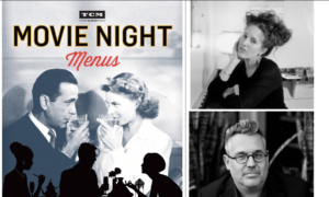 (L–R) James Stewart, Lionel Barrymore, Robert Taylor, Joan Crawford, Melvyn Douglas, and Franchot Tone on the set of “The Gorgeous Hussy.” (Metro-Goldwyn-Mayer)