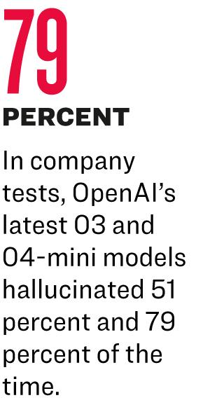 In company tests, OpenAI’s latest 03 and 04-mini models hallucinated 51 percent and 79 percent of the time. And in a 2024 study evaluating the use of AI in the legal profession, hallucination rates ranged up to 88 percent.