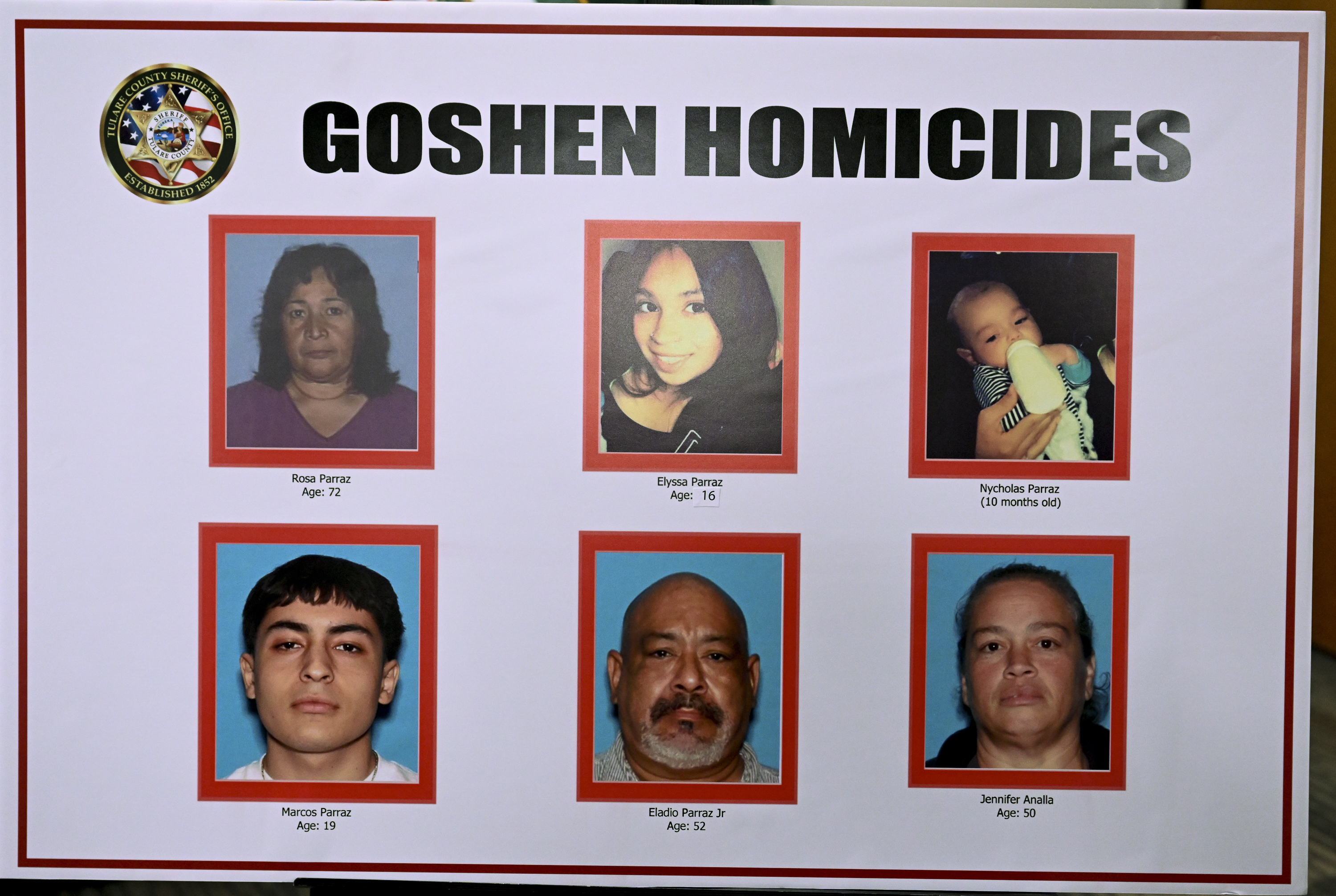 The six victims, including a teen mother and her baby, were gunned down on Jan. 16 in rural Goshen, a community of 3,000 in the San Joaquin Valley.