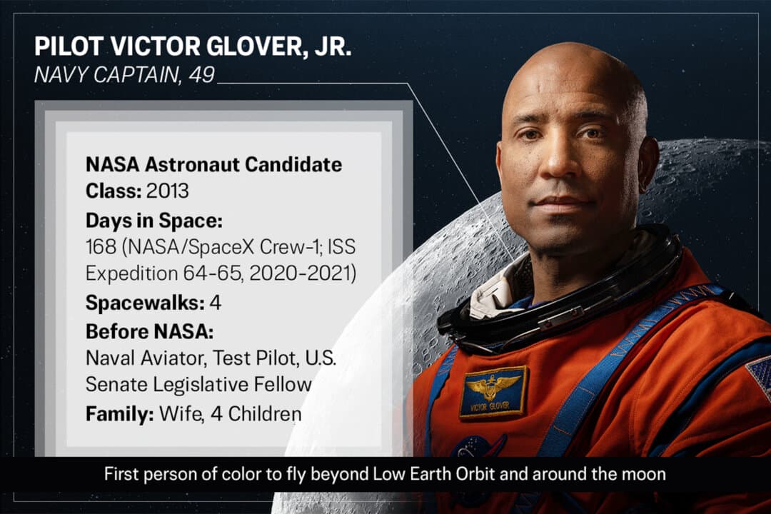 Sitting next to Reid Wiseman will be Artemis II’s pilot, another Navy captain with extensive experience as a naval aviator and test pilot. Glover was selected for NASA’s 21st Astronaut Candidate Class in 2013 while serving as a legislative fellow in the U.S. Senate.