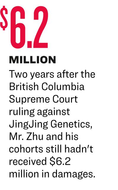 In 2014, two years after the British Columbia Supreme Court ruling against JingJing Genetics, XY still hadn’t received the CA$8.5 million in damages. In further pursuit of the damages, XY sued another company controlled by Mr. Zhu—this time in Hong Kong.