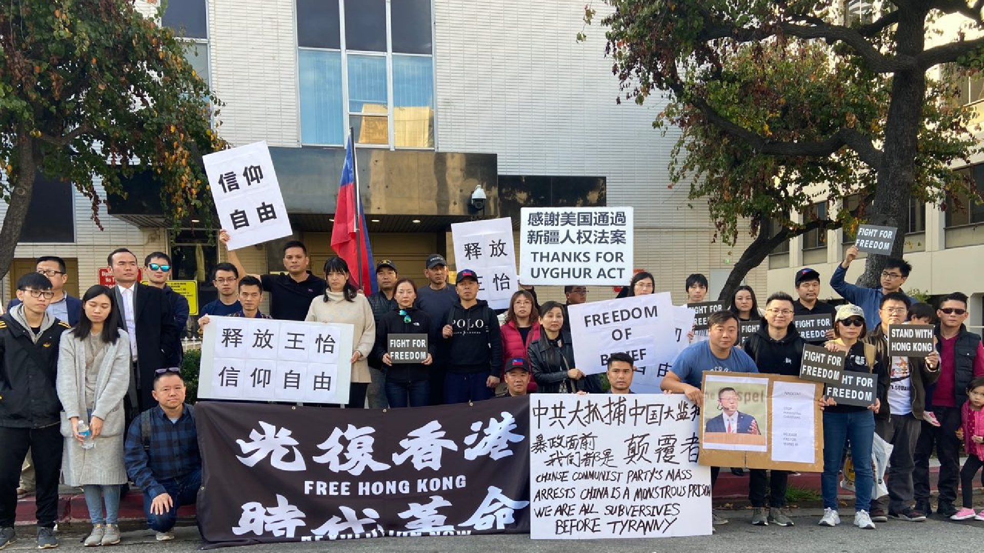 Dozens of pro-democracy demonstrators stood in front of the Chinese consulate in Los Angeles on New Year’s Day to take a stance against Beijing’s year-end arrests of human rights advocates.