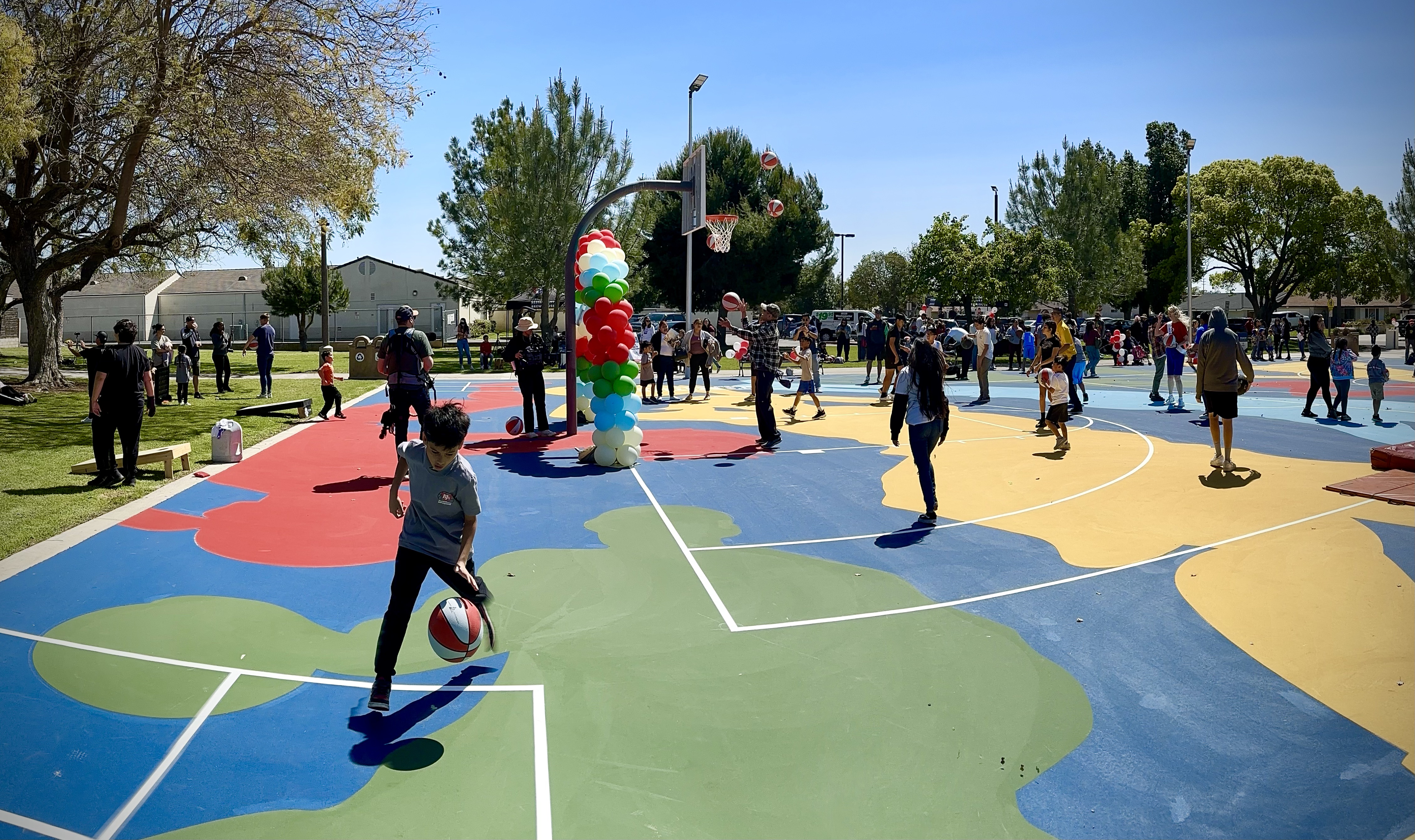 SANTA ANA, Calif.—What is usually a tidy park surrounded by a quiet neighborhood was instead met April 4 with a festive afternoon celebration of the city’s newest addition—a basketball court at Portola Park.