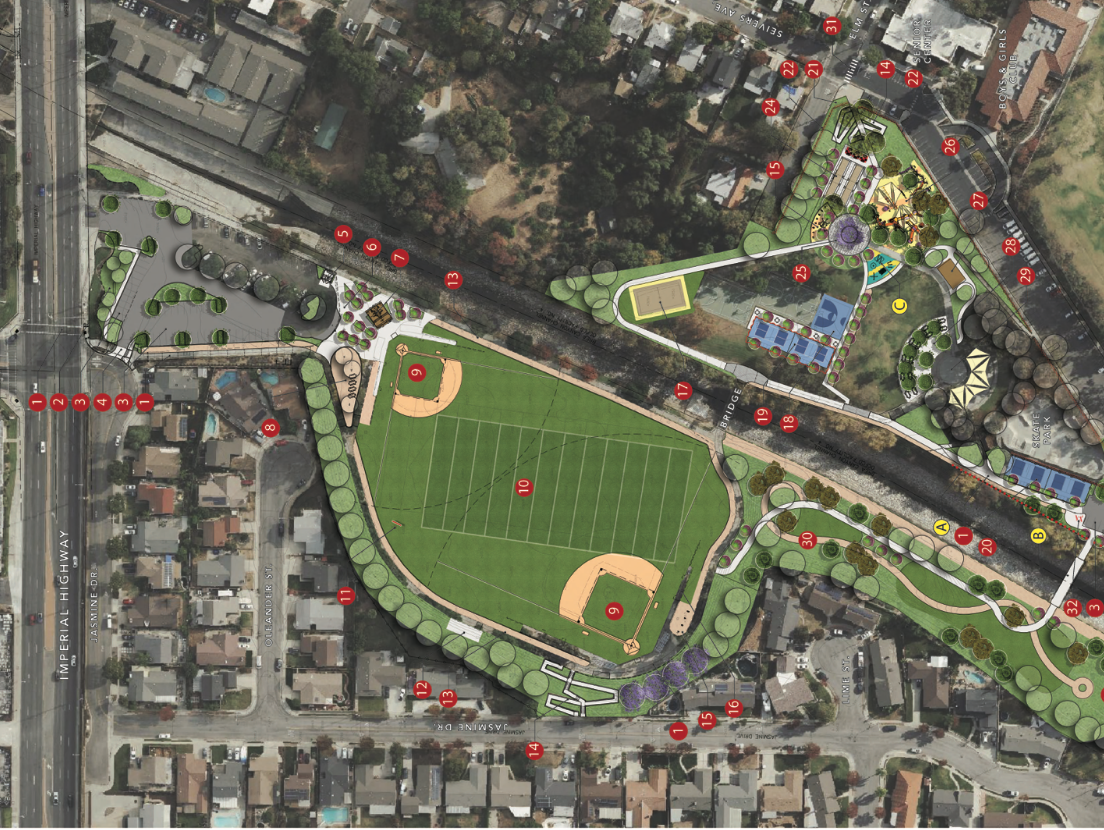 The Arovista Park modernization concept blueprint for renovating Arovista Park in Brea, Calif. (Courtesy of the City of Brea)
