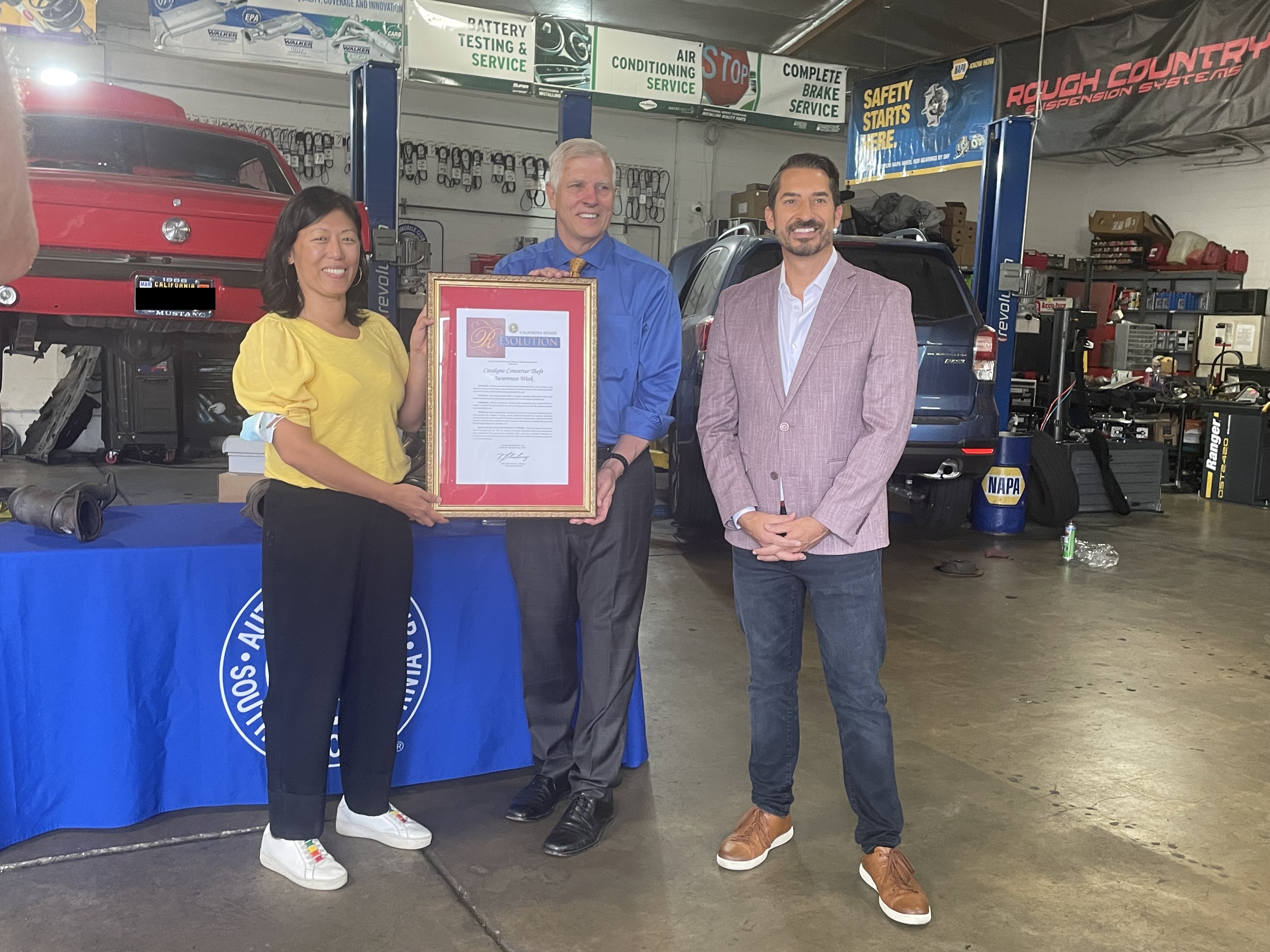 GARDEN GROVE, Calif.—To help mitigate the risk of catalytic converter thefts, State Sen. Tom Umberg (D-Santa Ana) joined representatives from the Automobile Club of Southern California and the Garden Grove Police Department at Buddy’s Auto Tires And More to etch vehicles’ license numbers on converters for free.