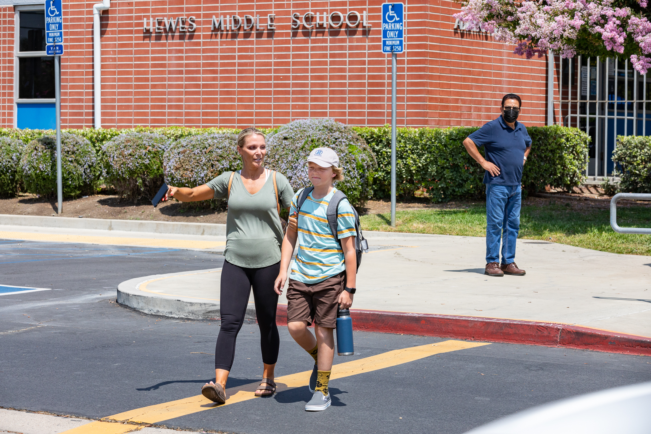 Ezra Nelson stands in front of Hewes Middle School in Santa Ana, Calif., on Aug. 2, 2021. (John Fredricks/The Epoch Times)