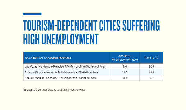 Possibly explaining the vastly different rates of employment within the state, regions with a higher percentage of high-income earners are doing better than regions with more low-income earners. Many workers within the tourism-dependent hospitality industry are low-wage hotel workers, for example.