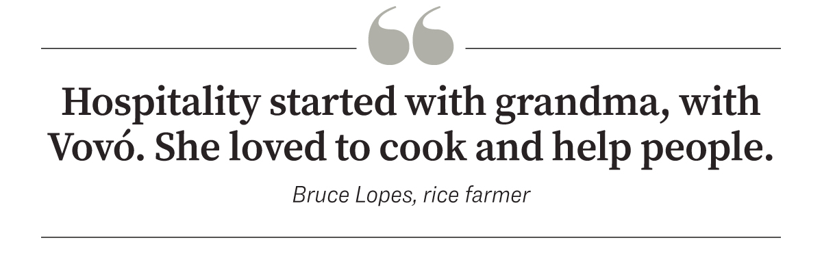 Bruce’s grandfather, John Sylvester Lopes, founded the rice farm in 1914. He emigrated from the Azores island of São Jorge, Portugal, in 1899 with the clothes on his back, two loaves of bread, and very little money. When he disembarked from the ship at the Statue of Liberty in New York Harbor, he couldn’t speak English but managed to find work and earn enough money to travel by wagon train to the foothills of Winnemucca, Nevada, where he met his wife, Mary, also an immigrant from São Jorge.