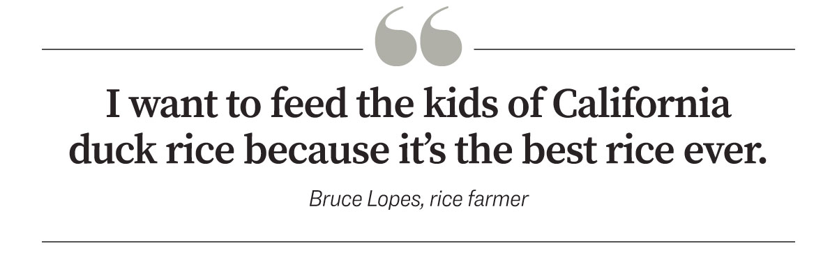 Christopher arranged to sell rice farmed with the duck–rice method to California schools through the state’s Farm to School program.
