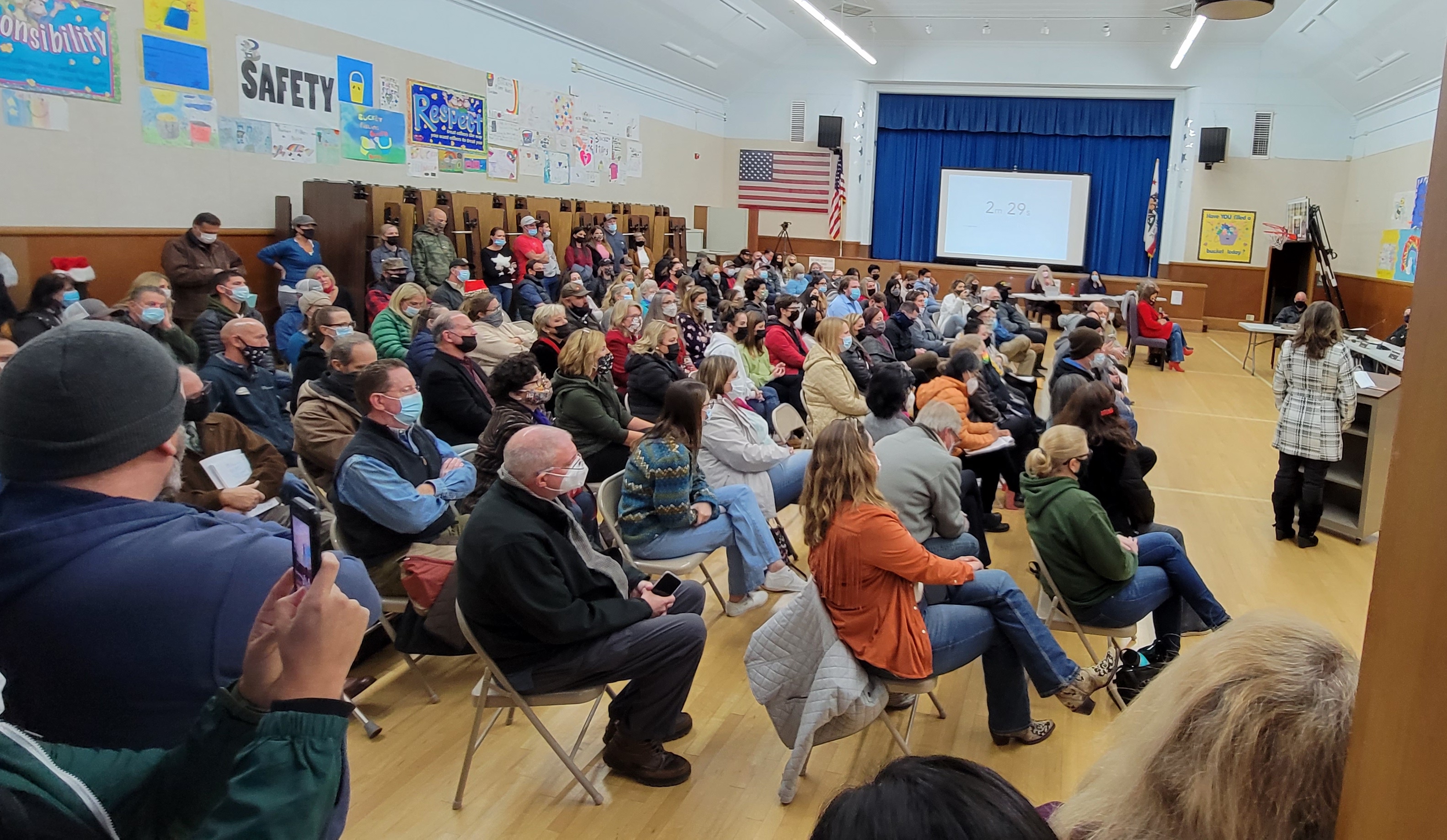 A crowd of more than 150 people packed a school board meeting in Salinas, Calif., on Dec. 15, 2021. (Courtesy of Josey Schenkoske)