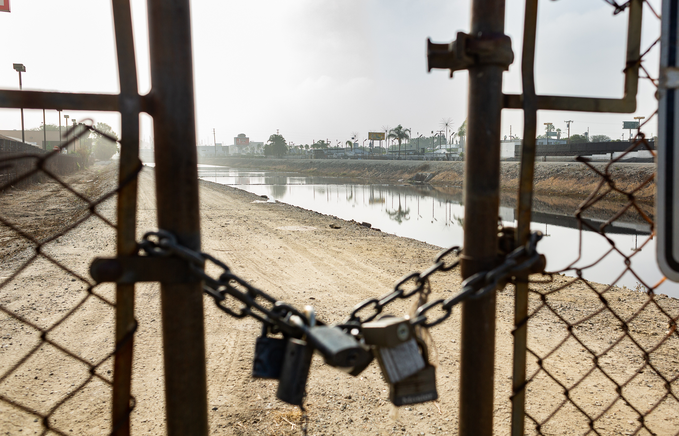 Treatment is underway for the Dominguez Channel as residents have been experiencing a foul odor from the water in Carson, Calif., on Nov. 4, 2021. (John Fredricks/The Epoch Times)