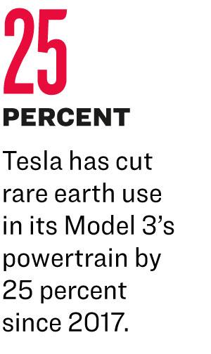 Tesla, for instance, has cut rare earth use for its Model 3’s powertrain by 25 percent since 2017.