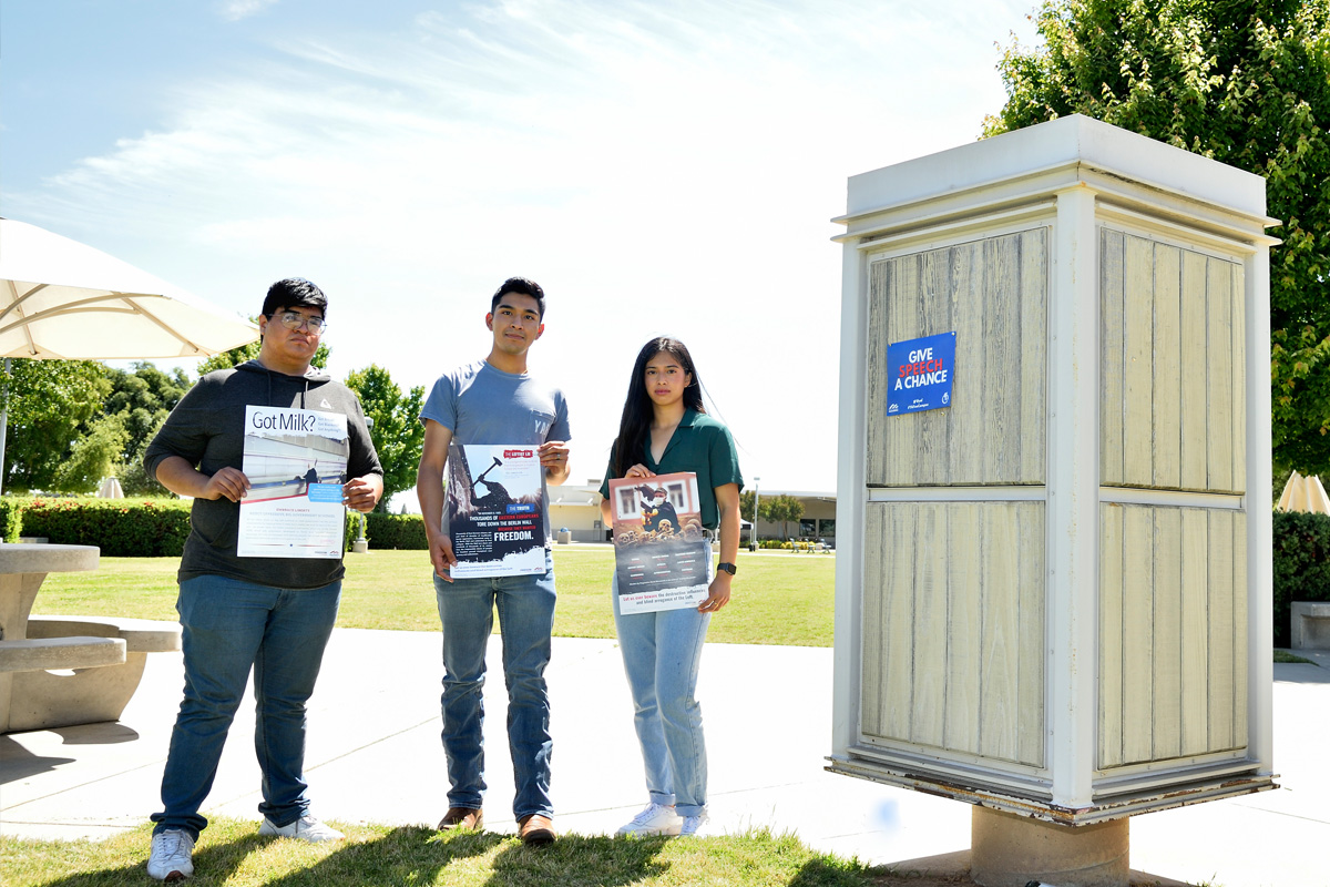 Following the ruling, one of the plaintiffs, Alejandro Flores, and other members of the Clovis Chapter of Young Americans for Freedom (YAF) were able to put up a mock Berlin Wall and sledgehammers to break it down. They were also able to put up flyers.