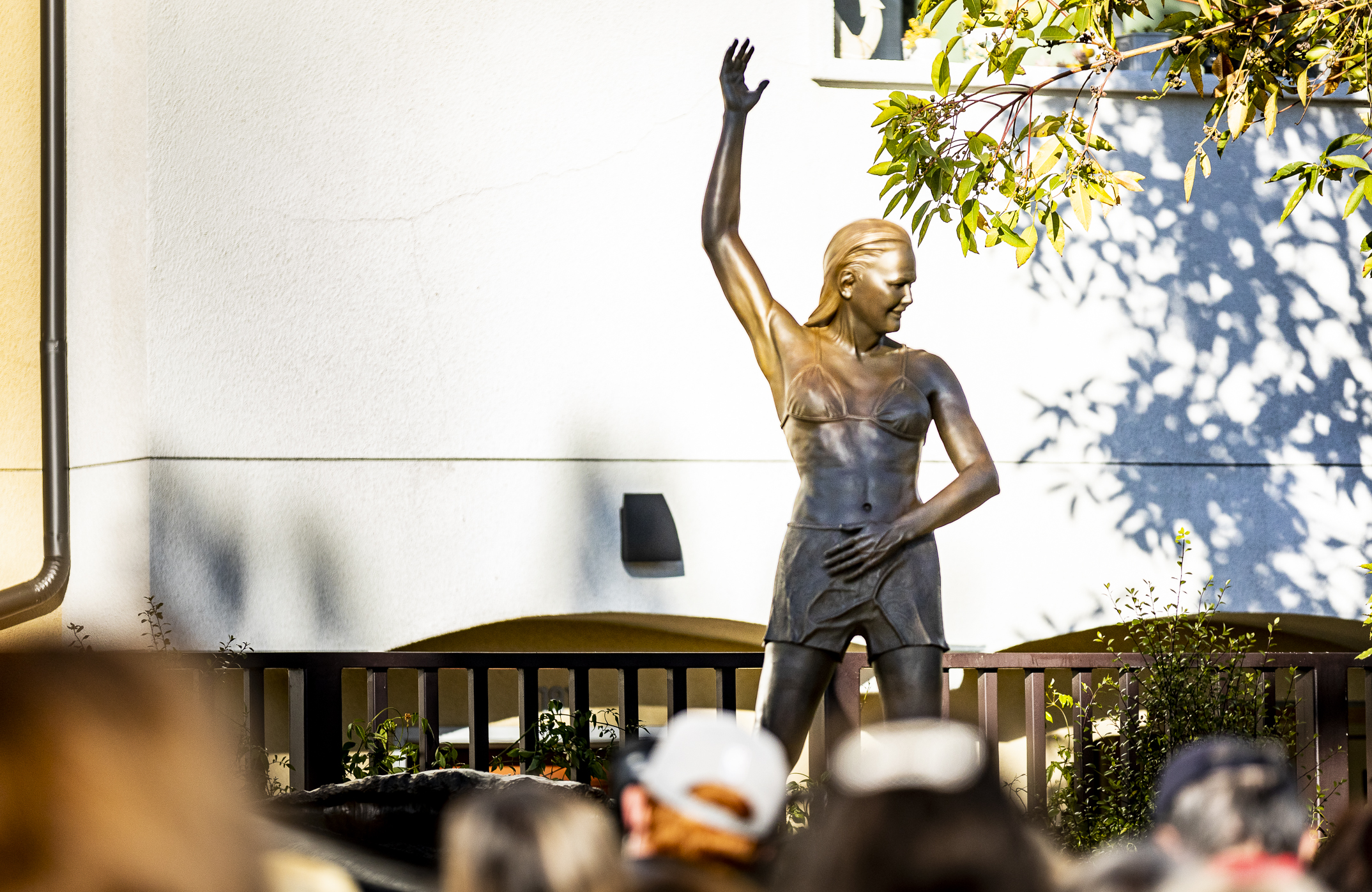 Hoffman’s family and friends were joined by hundreds of people at the unveiling of her statue, which included speeches by Mayor of Dana Point Joseph Muller and Hoffman’s childhood friends.