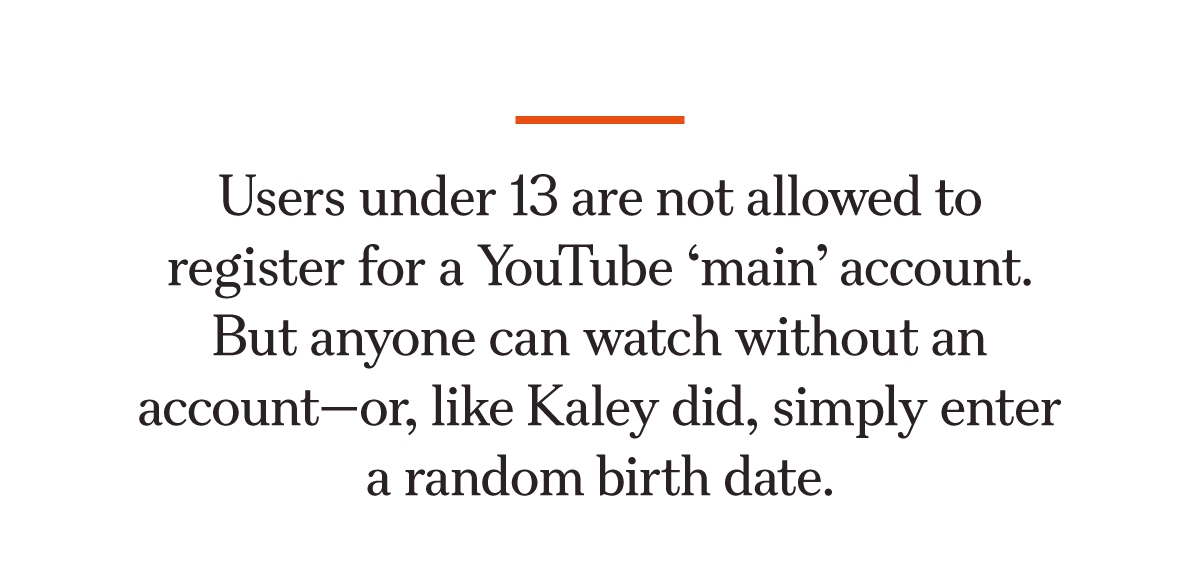 Like “Kaley G.M.,” the 20-year-old plaintiff in the Los Angeles trial, JackLynn was on YouTube young, and often. Users under 13 are not allowed to register for a YouTube “main” account; they are instead diverted to a restricted version. But anyone can watch without an account—or, like Kaley did, simply enter a random birth date.