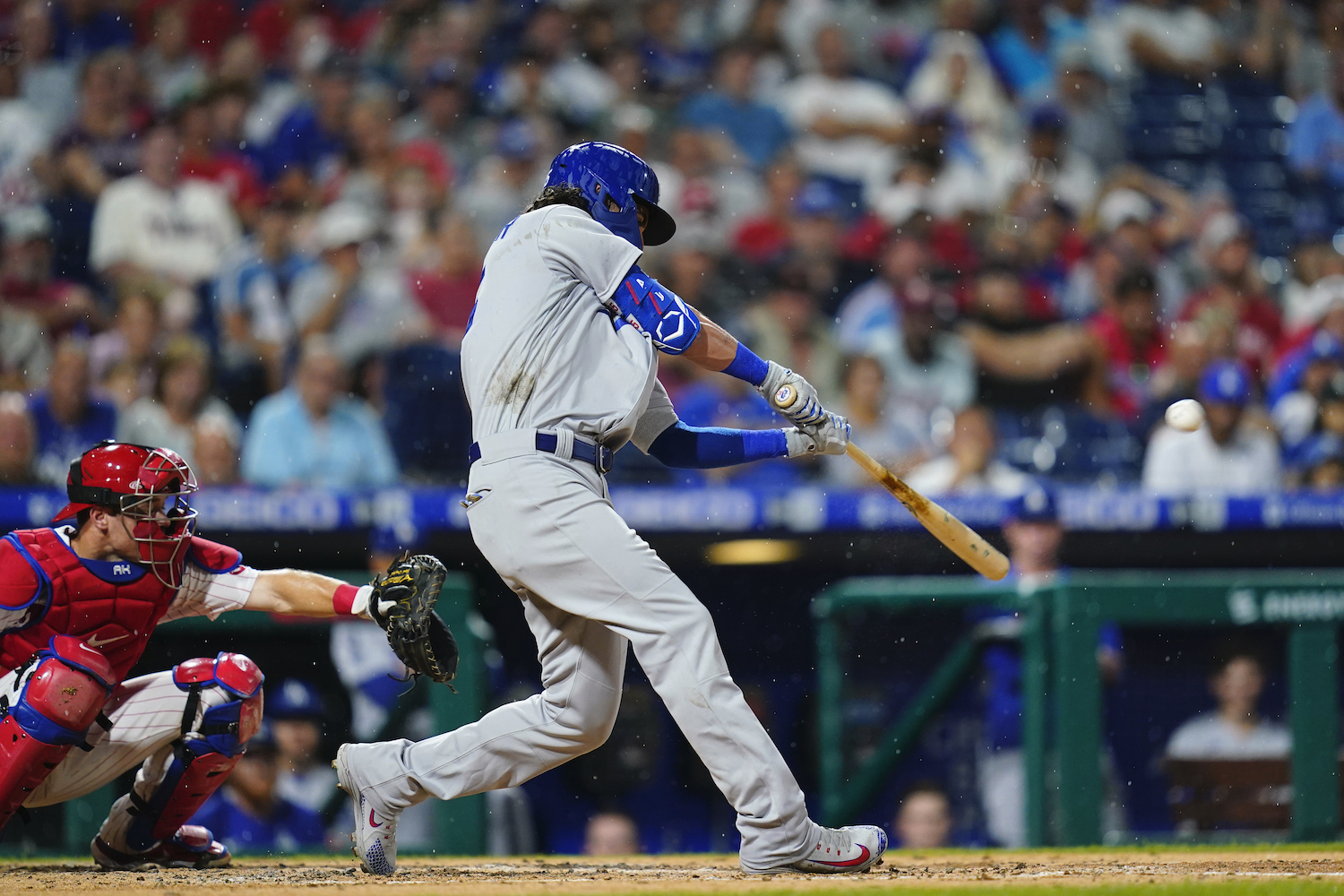 PHILADELPHIA—Cody Bellinger chopped ‘em foul, popped ’em foul and ripped ‘em foul. One by one by one the foul balls sprayed—nine in all—until the Dodgers slugger found the sinker he wanted and knocked it in the seats.
