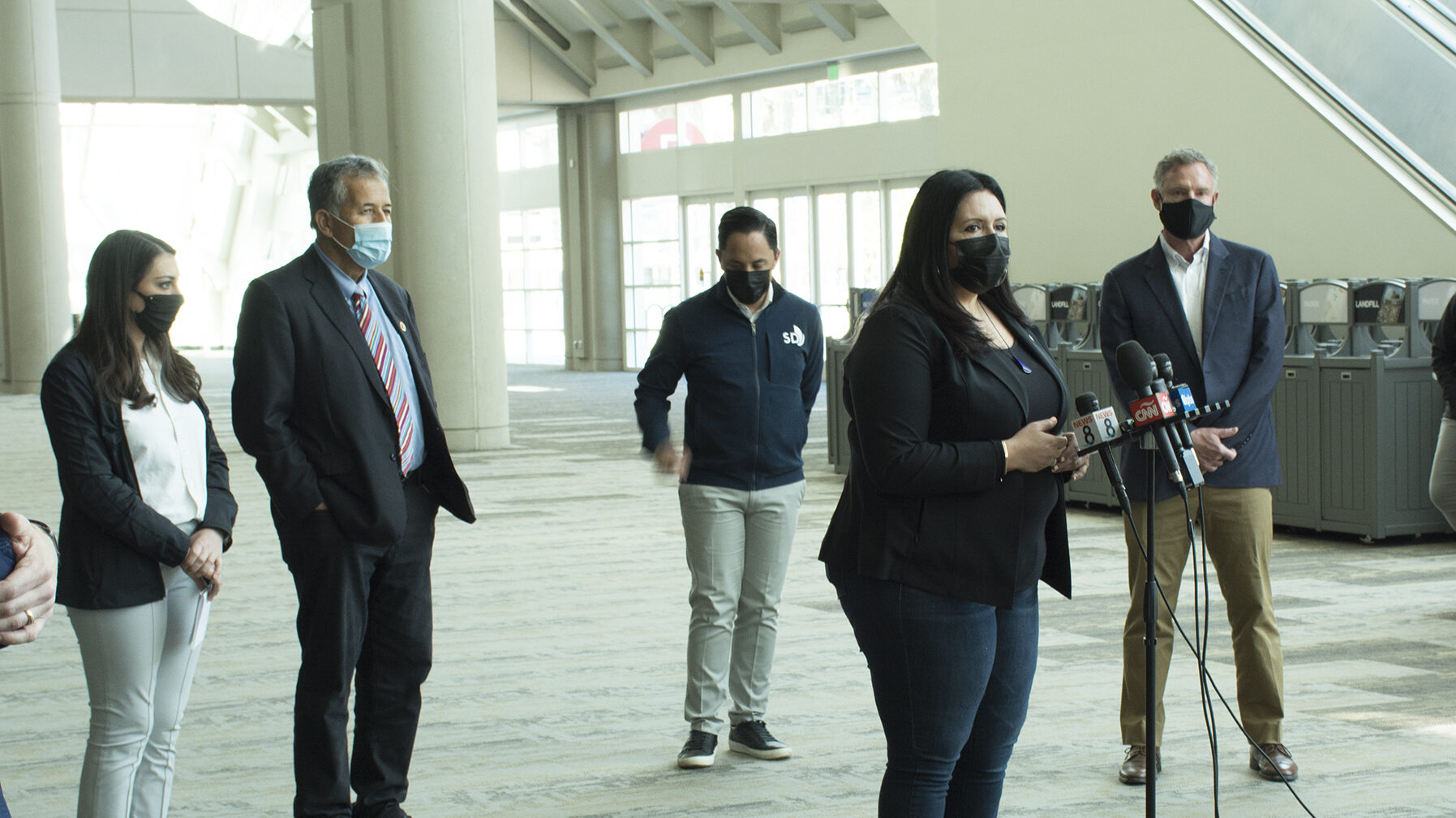 On March 27, Gloria and County Board of Supervisors Vice Chairwoman Nora Vargas led elected officials for a tour of the exhibit hall where some cots had already been placed. The guided tour wasn’t open to the press. A local station, CBS8 TV, was selected to provide a press pool video.