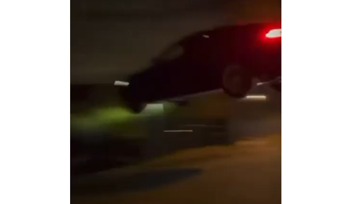 The intersection where the stunt happened looks like the same one in a video posted in 2020 of a Tesla Model X jumping during the day at a lower speed.
