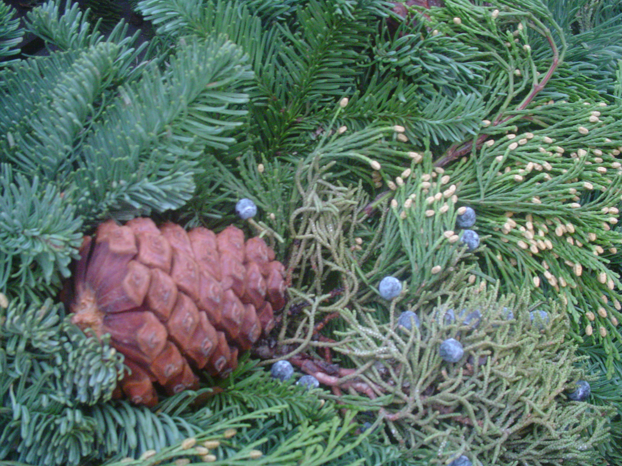 All conifers (a name referring to the cone shaped seed pods of evergreens) have a cool and refreshing scent thanks to chemicals known as essential oils. Conifer essential oils are both calming and invigorating. In Aromatherapy they are used to stimulate a tired mind and soothe a tense body.