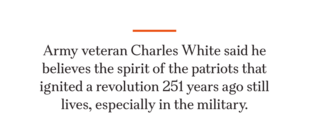 White said he believes that the spirit of the patriots that ignited a revolution 251 years ago still lives, especially in the military.