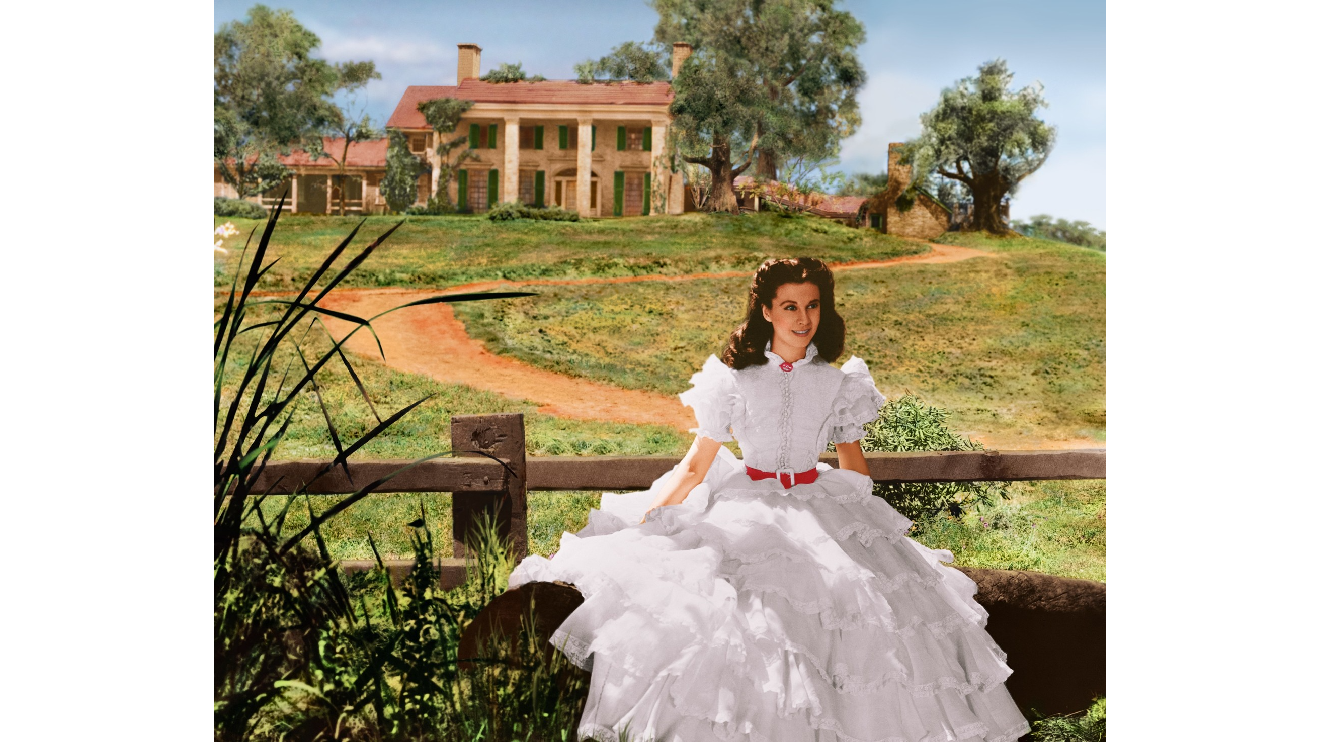 (L–R) Ashley Wilkes (Leslie Howard), Scarlett O’Hara (Vivien Leigh), and Melanie (Olivia de Havilland), in “Gone With the Wind.” (MGM/MovieStillsDB)
