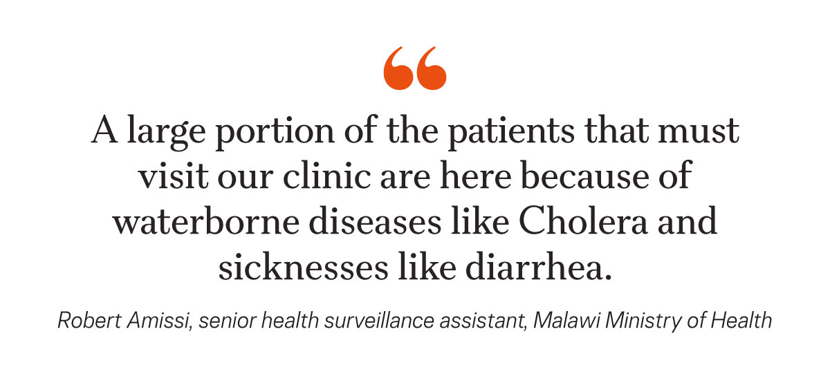 Malawian health officials noted that this water source is considered the village’s major cause of waterborne disease, including cholera, a diarrheal infection caused by consuming food or water contaminated with the bacteria Vibrio cholerae O1 or O139.
