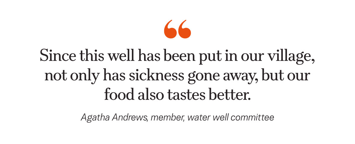 “Since this well has been put in our village, not only has sickness gone away, but our food also tastes better,” Andrews said.
