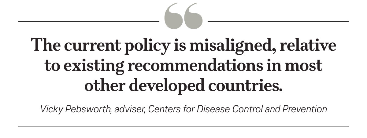 “The current policy is misaligned, relative to existing recommendations in most other developed countries,” Pebsworth said.
