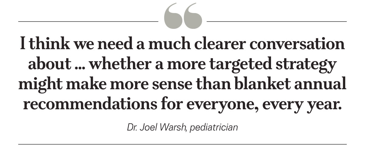 CDC advisers voted over the summer to endorse the existing recommendations of annual vaccination for all individuals aged 6 months and older, advice that was adopted by Kennedy because there was no CDC director in place at the time.
