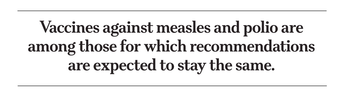 Vaccines against measles and polio are among those for which recommendations could stay the same.