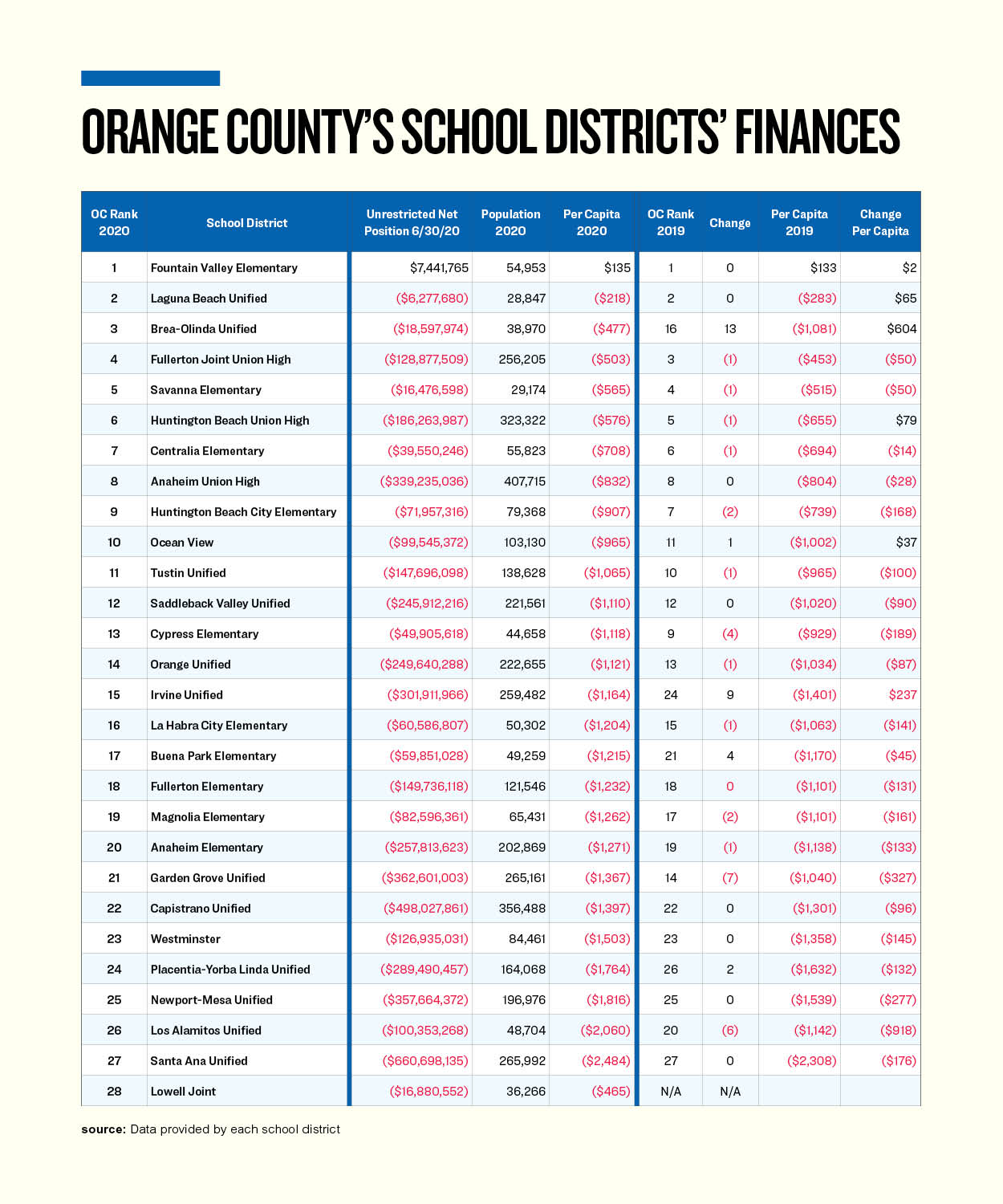 How did the pandemic impact the finances of Orange County’s school districts? The audited financial statements for the fiscal year ending June 30, 2020, are now available.
