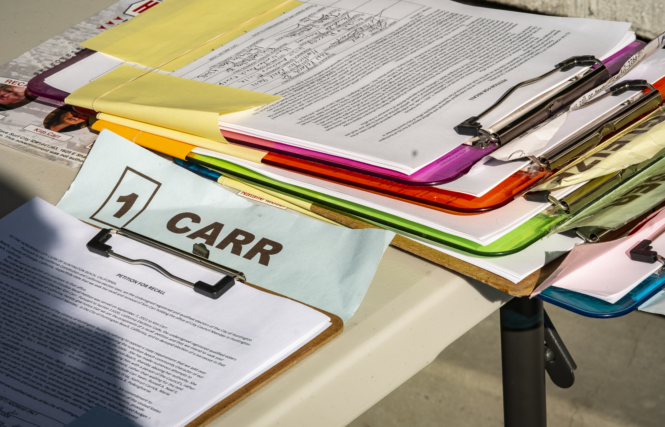 According to recall organizers, around 14,000 signatures for each councilmember were turned in to the Huntington Beach City Clerk’s office, far above the approximate 13,000 signature minimum requirement—representing 10 percent of current Huntington Beach voters—yet not quite the 20,000 recommended by the clerk’s office in the likely case that some signatures get removed during the verification process.