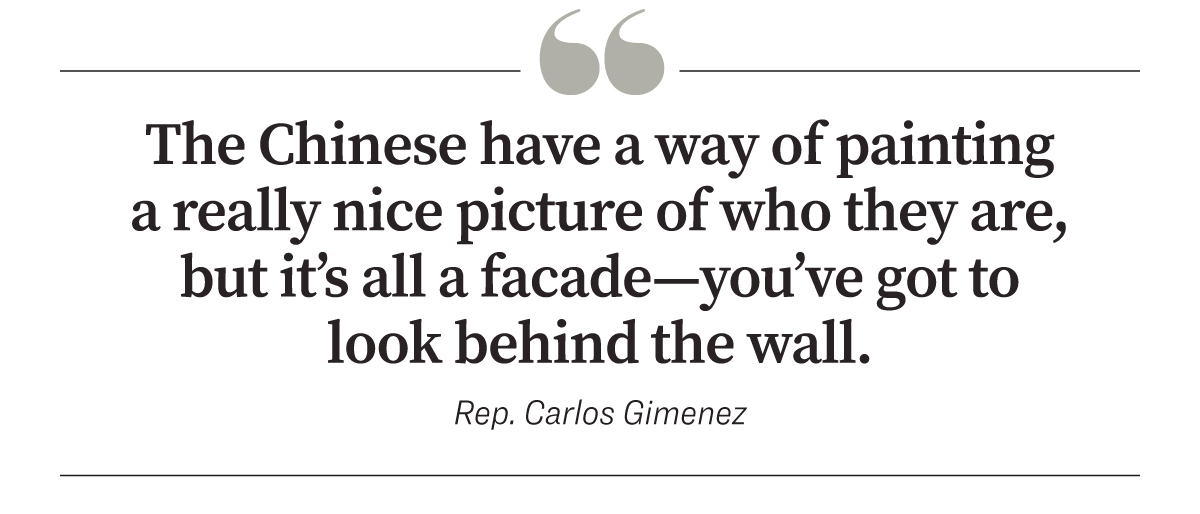 “The Chinese have a way of painting a really nice picture of who they are, but it’s all a facade—you’ve got to look behind the wall and look behind the curtain to see the reality of what China really is,” Giménez said.