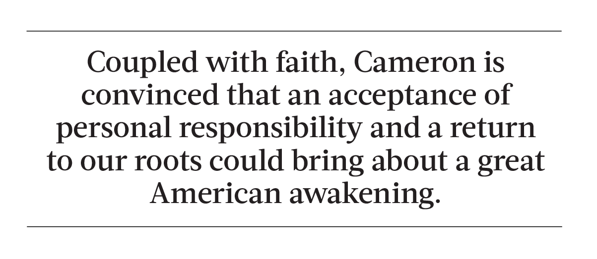 Cameron is convinced that we need to revive both faith and a sense of personal responsibility. He said he believes that this return to our roots could bring about a great American awakening. “I believe that we can return to the American character and the American blessing and protection that we have had in the past, and even surpass it, if we get back to those foundations,” he told The Epoch Times.