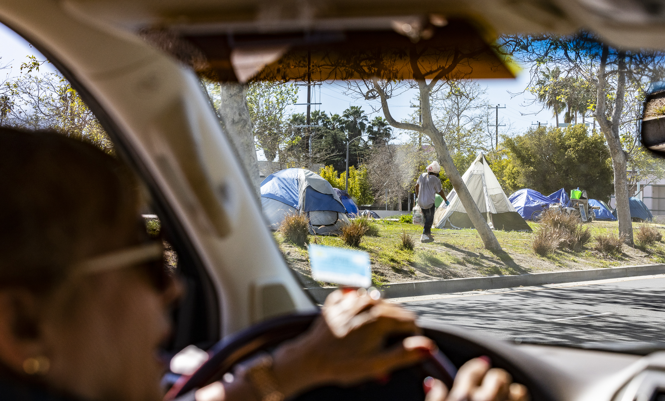 A homeless encampment near the popular boardwalk area of Venice Beach, Calif., on June 9, 2021. (John Fredricks/The Epoch Times)