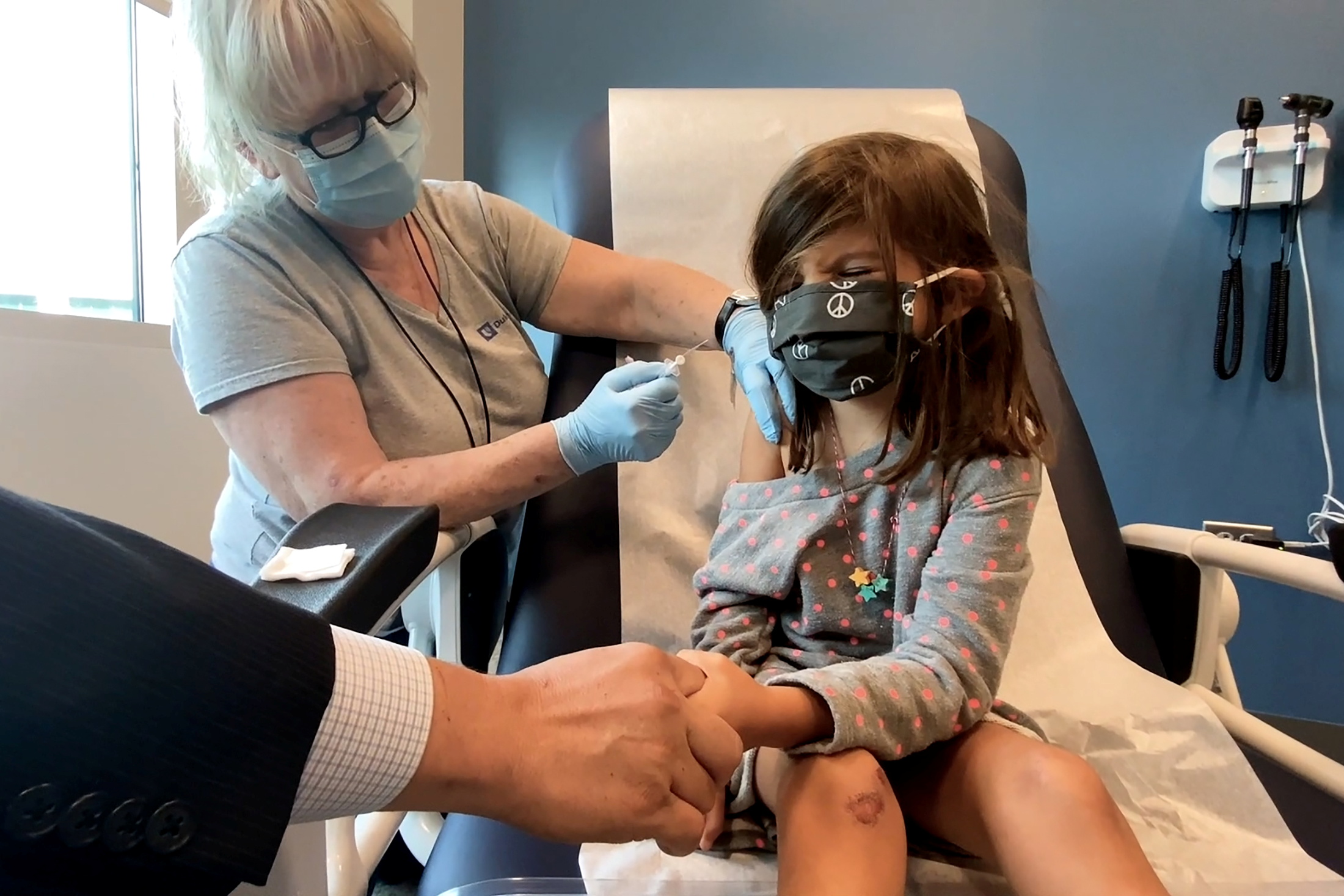 While the pediatric shots are roughly one-third of the dosage than the adult vaccine, the doses must be given on the same schedule—two shots administered 21 days apart.