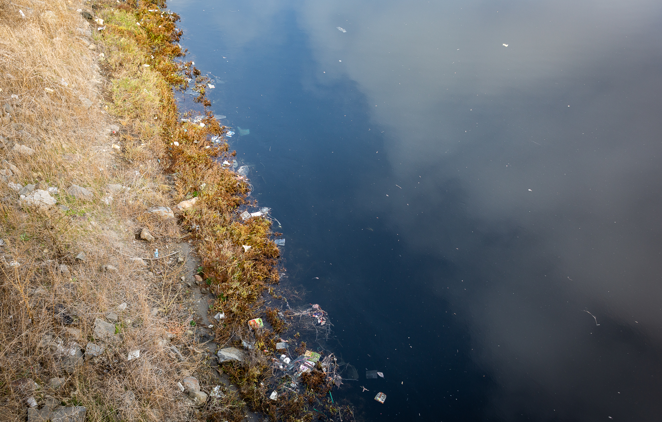 Businesses and residents near The Dominguez Channel have been experiencing a foul odor from the water in Carson, Calif., on Nov. 4, 2021. (John Fredricks/The Epoch Times)
